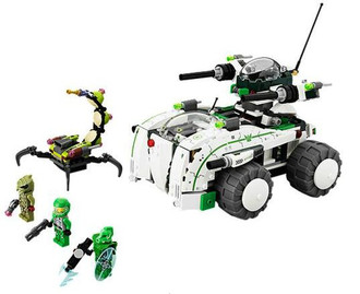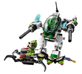 The alien scorpion is on the rampage with a cocoon to capture the green Galaxy Squad heroes! Help green team leader Chuck Stonebreaker and his robot sidekick to bust the buggoid in the awesome Vermin Vaporizer! Tag team the alien invader when you activate the split function to turn the Vermin Vaporizer into a mighty mech and a battle buggy! Fire the mech's dual flick missiles and powerful cannons with Chuck Stonebreaker in the opening cockpit! Then attack the aliens in the battle buggy to save the day – the Galaxy Squad way! Includes 3 minifigures: Chuck Stonebreaker, robot sidekick and alien buggoid, all with assorted weapons.