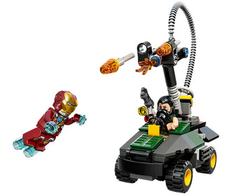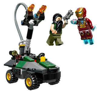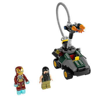 It's a Mandarin Face Off at the Miami dockside in the final battle between Iron Man and the Mandarin. Take on the ultra-tough armored car and its rotating flamethrower with dual flame flick missiles! Fly circles around the bad guy and don't let him scorch this super hero! Includes 2 minifigures and a weapon: Iron Man with Heart Breaker Armor and the Mandarin.