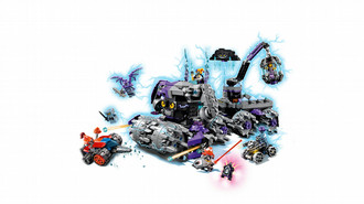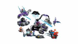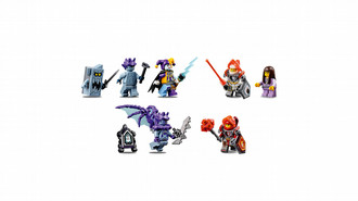 Storm Jestro’s Headquarters with Macy’s Underminer vehicle, and battle Jestro’s Hatattacka flying hat and Stone Wheeler vehicles! Unite the LEGO® NEXO KNIGHTS™ heroes together and combine their NEXO Powers to stop Jestro finding the Forbidden Powers—and rescue Ava from the dangling cage! Includes scannable shields for four NEXO Powers: Ninja Strike, Mindbender, Tone of Power and Standing Ovation, and Forbidden Power Corrupting Crush.