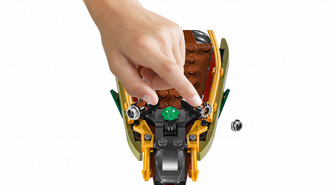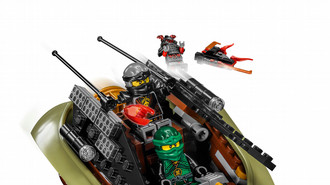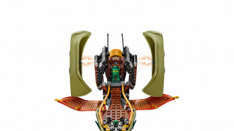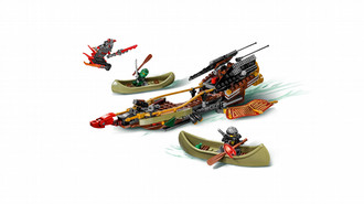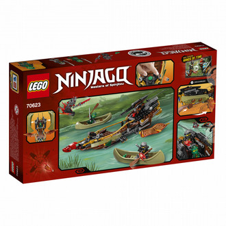 Join Lloyd and Cole on their boat/flyer and glide into Vermillion territory. Fire the stud shooters to fend off Vermin’s hoverboard attacks or flip out the wings and launch into the sky. Then detach the canoe and paddle silently through the swamp to surprise the enemy. Whatever you do, you must keep that Pause Time Blade in ninja hands!