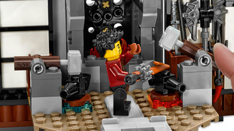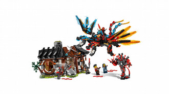 Build the elemental Fusion Dragon from fire and water and launch into the sky. Head to the forge where the evil Vermillion have trapped Ray and Maya and are forcing them to make their weapons. Fire the dragon’s crossbow and take down the powerful Buffmillion mech. Land on the roof of the forge, fend off Commander Raggmunk and Slackjaw's sword and axe attacks and enter the building. Seek out the hidden Dragon Dagger to activate the forge's chimney. Then free Kai and Nya's mum and dad and claim the Reversal Time Blade!