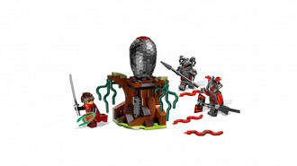Team up with Kai and head to the swamp! Use your awesome ninja skills to overpower Rivett and Slackjaw who are on guard with their Vermillion axe and sword. Approach the Vermillion egg, but beware—it could explode at any time and release dangerous snakes! So grab that Forward Time Blade as quickly as you can and escape.