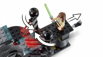 Master Qui-Gon has cornered Darth Maul at the power generator on Naboo and needs your help to defeat him! Duel it out with the Lightsabers and if you fall in the generator core, activate the catapult to jump back out. If Maul is too strong, push the lever to open the laser doors so Obi-Wan can join the battle! Who will win this epic duel? That's for you to decide…