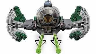 Jedi Master Yoda’s Starfighter is just the thing for traveling to distant planets. Place Yoda in the cockpit and load up R2-D2. Then fold the wings, load the shooters and get ready to launch into action!