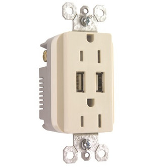 USB Charger with Duplex Decorator Tamper-Resistant Receptacle, Light Almond