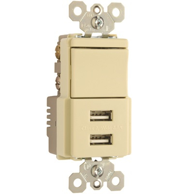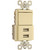 USB Charger with Single Pole/3-Way Switch, Ivory, 15A, 120V