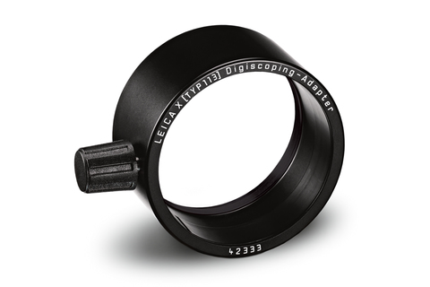 Leica Digiscoping-Adapter X (Typ 113) Combining a Leica X (Typ 113) with the fitting Leica Digiscoping Adapter for Leica X (Typ 113), the Leica APO-Televid spotting scopes 82 or Leica APO-Televid spotting scopes 82 and the Leica eyepieces you will receive a variable focal length between 850 mm and 3.100 mm. No other connection between a spotting scope and a camera with high quality sensor is so stable and at same time so flexible so easy in its handling. With a light intensity of 1.7 and the approved big APS-C-Sensor you will get images richer in contrast, brightness and depth. Even when the weather and light conditions are bad and you have to choose a higher ISO. New for the Leica X (Typ 113) is the video-function, which provides you also the possibility to digiscope brilliant films in MP4-Format.