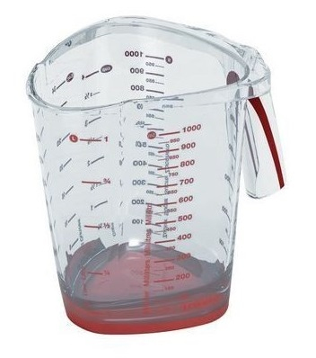 - with six measuring scales (flour, sugar, liquids, pints, cups, fluid ounces)