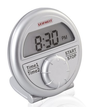 The timer, that measures two times parallel: as easy to operate like an analogous kitchen timer – thanks to the large rotary knob for the adjustment of the countdown. With bendable display and clock function. 3 years guarantee.