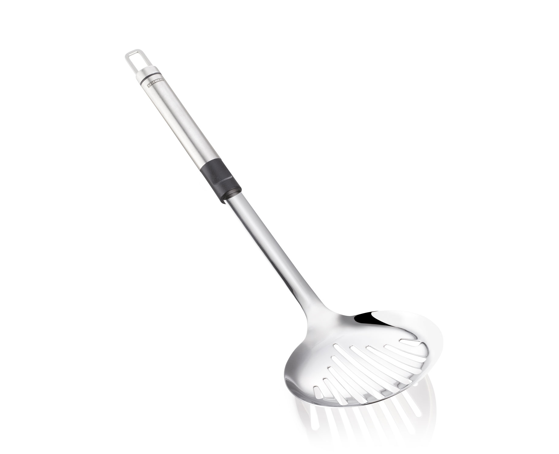 Proline Slotted Spoon Chic, simple and elegant – this way LEIFHEIT presents the kitchen helpers of the ProLine series. The high quality combining of stainless steel with black plastic is a design highlight in every kitchen and perfectly suitable for the serving on the table. The operation convinces as well: the oval shaped handle of the ProLine slotted spoon is well and safe to use. The high quality stainless steel offers a pleasant stability. With practical eyelet for hanging for the separately available ProLine hook rail. Leifheit guarantees for 2 years.