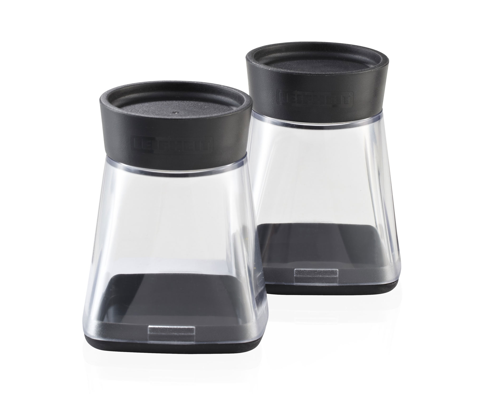 For keeping herbs and spices fresh and the ideal supplementing for the Leifheit spice mill Easy Fill: set of two containers with particularly large opening for the easy filling. Suitable for the CrushGrind ceramic crusher of the spice mill Easy Fill. Lid for spreading inclusive as well as spice labels. 2 years guarantee.