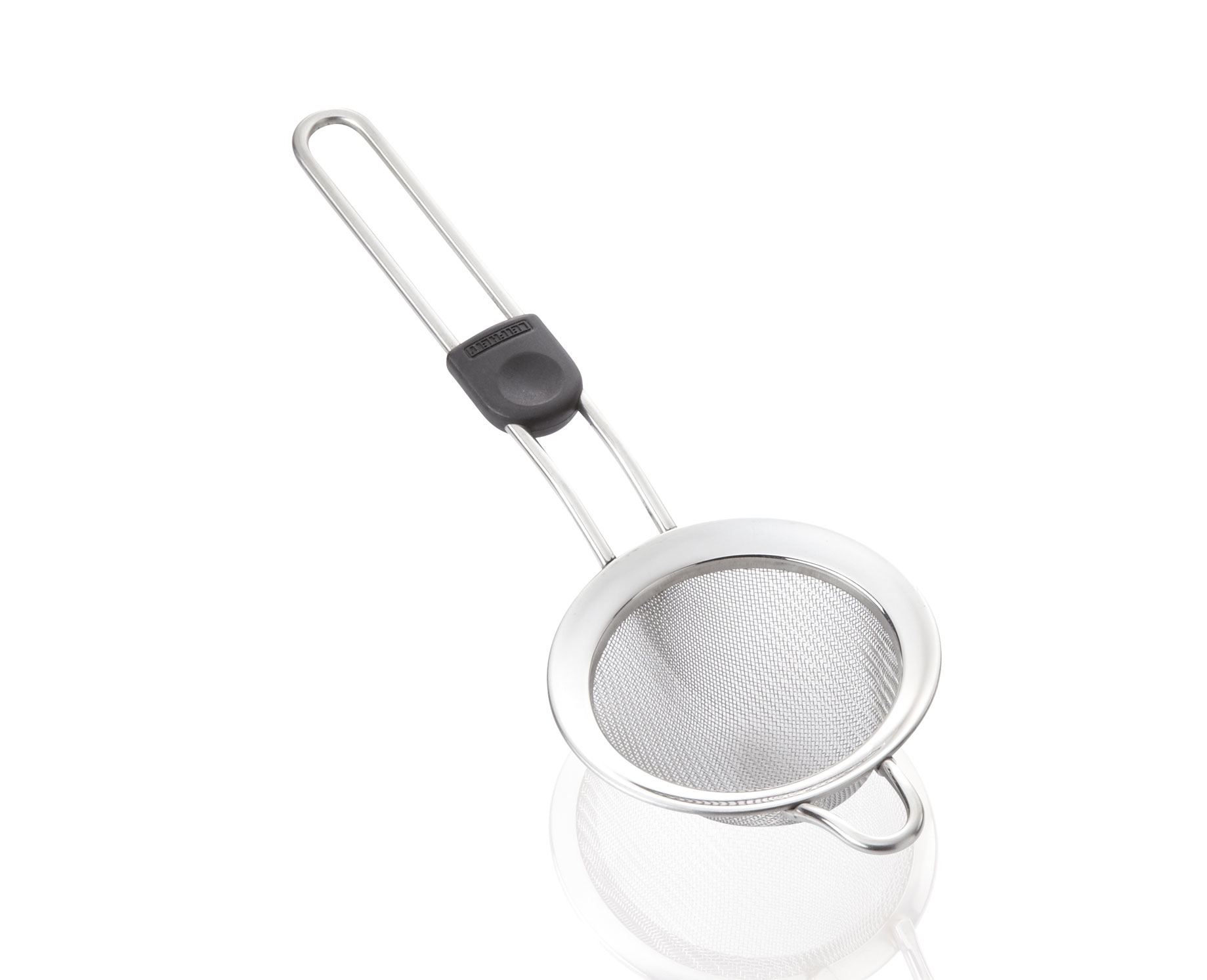Chic, simple and elegant – this way LEIFHEIT presents the kitchen helpers of the ProLine series. The high quality workmanship convinces as well as the operation: the slim handle of the ProLine kitchen strainer has a special insert with a hollow for the thumb. It enables the well and safe operation. The high quality stainless steel offers a pleasant stability. With practical eyelet for hanging for the separately available ProLine hook rail. Diameter 7,5cm. Leifheit guarantees for 2 years.