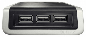 Minimalistic desktop power supply with 3 USB ports allows simultaneous charging of multiple mobile devices