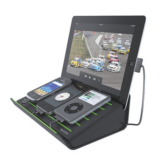Unique multicharger for simultaneously charging mobiles, iPods and tablet PCs. You can even continue to work on your device during charging. Make your mobile devices complete!
