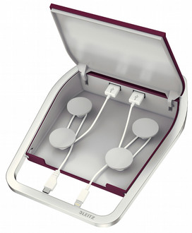 2 x USB, 5V/5A, AC 230V Sophisticated high-speed desktop charging station for simultaneously powering 2 devices The universal charging station is fully compatible with your iPhone and all brands of other devices. Includes convenient cable spools to keep your workspace tidy. Show your eye for detail.