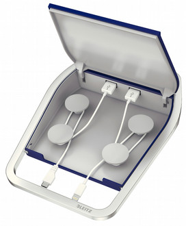 Sophisticated high-speed desktop charging station for simultaneously powering 2 devices. The universal charging station can be used as iPhone or iPad charger and all other brands. Includes convenient cable spools to keep your desk tidy. One of the desk accessories must haves. Show your eye for detail.