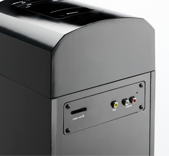 The iPT-2 SpeakerTower not only has a high quality and luxurious design, but also an excellent sound quality. Listen to your music from your iPod/iPhone, SD/MMC card, favorite FM radio station, connect your smartphone or tablet with an AUX cable or use the video output to connect the iPT-2 to your TV.