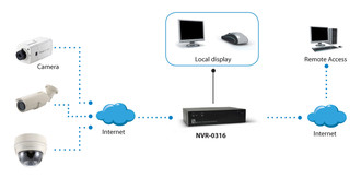 The NVR-0316 is designed for use within a full HD surveillance system, and performs recordings and playbacks pictures from network cameras in the system. It is an 16 channel network video recorder (NVR) with local display monitor support. Simply connect an USB keyboard and mouse and up to 16 full HD cameras can be connected via a network for recording and event management with easy and intuitive local user interface. It is also possible to perform the settings or operate the NVR using a web browser installed on a PC connected to the same network. Live and playback videos can also be viewed on major mobile devices through its web browser or platform specific app. Recorded videos from multiple NVRs can be played back from a remote PC running 256CH CMS software that comes free with the purchase of the NVR-0316 is compatible with most major brand cameras and its ability to automatically search configuring the system easier than ever.