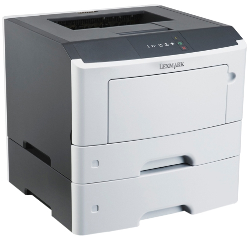 The Lexmark MS310d laser printer has internal 2-sided printing, a 800 MHz dual-core processor, 128MB of standard memory, 300-sheet total standard input and a print speed of up to 35 ppm.