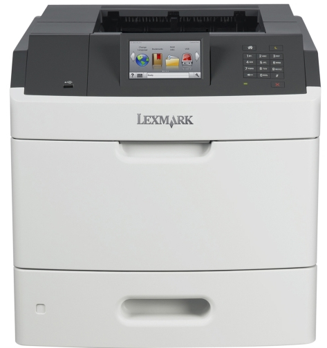 The Lexmark MS810de network-ready laser printer includes a 4.3-inch color touch-screen operator panel, internal 2-sided printing, 800 MHz processor, 512MB of memory, 650-sheet standard input and a front USB Direct print port.