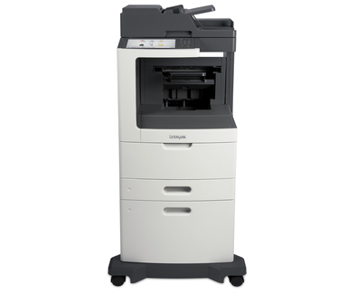 The Lexmark MX810dxpe MFP with a customizable e-Task touch screen, a staple with hole punch finisher, 2,750-sheet standard input, 1GB of standard memory and 320+GB hard disk provides print, copy, fax, scan and email functions.