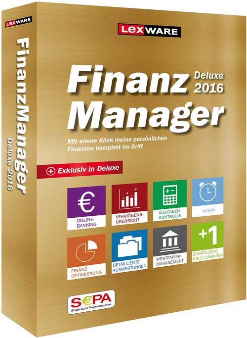 Lexware FinanzManager Deluxe 2016. Compatible operating systems: Windows. Language version: DEU