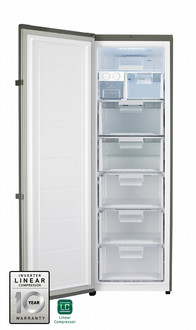 LG GL5137AEHZ. Case design: Freestanding, Type: Upright, Colour of product: Stainless steel. Freezer net capacity: 312 L, Noise level: 42 dB. Energy efficiency class: A++, Annual energy consumption: 275 kWh. Width: 595 mm, Depth: 673 mm, Height: 1850 mm