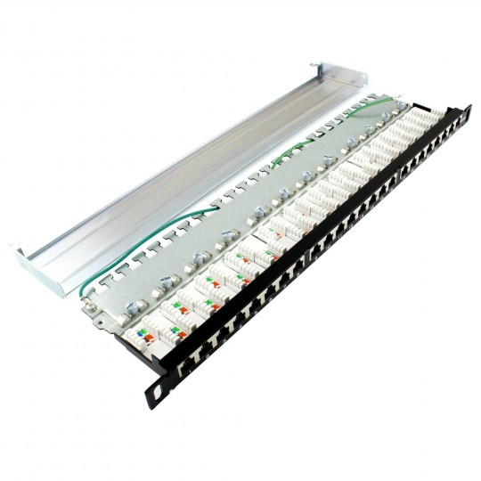 Ligawo 1020055. Data transfer rate (max): 10000 Mbit/s, Connector(s): RJ45, Connector contacts plating: Gold. Colour of product: Black, Rack capacity: 0.5U. Width: 483 mm, Height: 24 mm, Depth: 100 mm