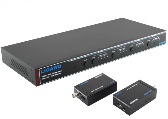 Ligawo 3080041 HDMI Matrix 4x4 + SDI Extender. Video port type: HDMI. Maximum resolution: 1920 x 1080 pixels, Supported video modes: 480i, 576i, 720p, 1080i. Colour of product: Black. Input voltage: 100-240, Input current: 2.5, Output voltage: 12 V. Dimensions (WxDxH): 220 x 440 x 55 mm, Weight: 2.3 kg