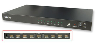 This compact little unit allows you to connect the output from a single HD source, such as a set top box, DVD player or computer, to eight separate HDMI or DVI equipped displays. Ideal for demonstration, education, training, advertising and presentation purposes.