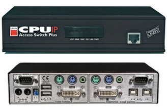 The IP Access Switch Plus DVI USB Audio provides remote keyboard, video and mouse access to a computer or KVM switch via IP. It also adds virtual media and audio support for increased versatility. It does not need any software to be installed on your servers and is easy to set up and use.
