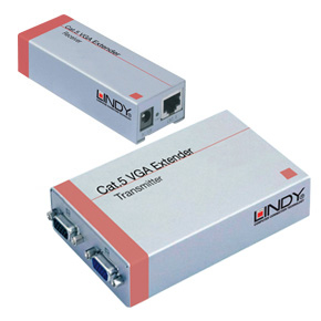 Lindy VGA Extender Cat.5. Connector 1: VGA, Connector 2: RJ45. Dimensions (WxDxH): 123 x 75 x 32 mm, Cable type: Cat.5/5e