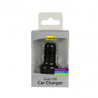 LG096 - 2x USB-A, Black Charge two USB devices including Mobile Phones such as iPhone / Blackberry, iPod's, Digital Cameras, and Portable Games Consoles simultaneously with the Logic3 Dual USB Car Charger. This handy Car Charger is great for journeys away or to make sure everyone stays fully charged. The sockets on the adaptor are type A USB sockets which will accept the USB plugs found on many gadgets. Compact and lightweight design tucks away easily.
