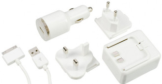 The 3-in-1 Total Power Pack is the essential travel companion providing power for your iPhone, iPod and iPad when you require it most. Recharge your device via the Car Charger or use the AC Adaptor supplied with UK 3pin & Euro 2pin interchangeable plugs. Both recharging options are used in conjunction with a detachable USB sync cable to allow you to connect your iPhone, iPod and iPad to your PC.