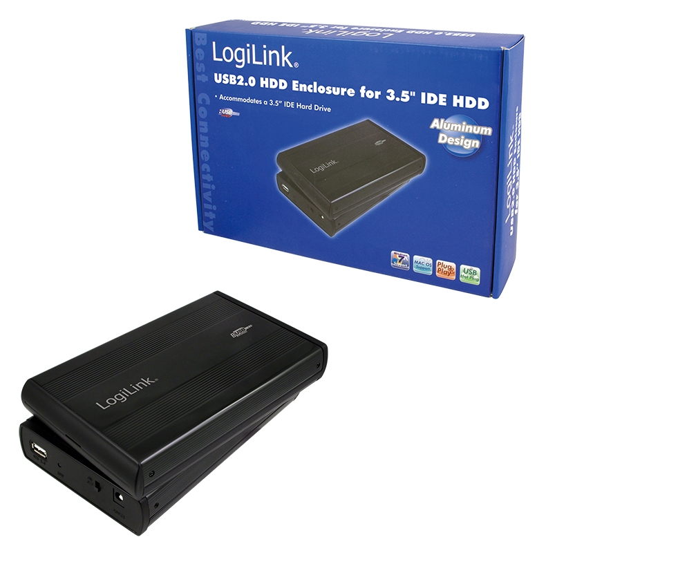 LogiLink 3,5" IDE HDD USB 2.0. Storage drive size: 3.5", Supported storage drive interfaces: IDE/ATA. Interface: USB 2.0. Colour of product: Black. Cables included: USB. Power requirements: 220 V, Supported data transfer rates: 480 Mbit/s