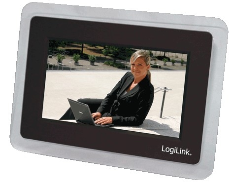 LogiLink Digital 7 Inch LCD Photo Frame. Display diagonal: 17.8 cm (7"), Display resolution: 480 x 234 pixels, Display: LCD. Compatible memory cards: MMC,SD,SDHC. Photo edit: Rotate. Colour of product: White. Width: 230 mm, Depth: 165 mm, Height: 40 mm