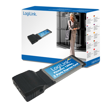 LogiLink PC0036. Host interface: ExpressCard, Output interface: IEEE 1394/Firewire, Connector(s): IEEE1394a 6-pin. Colour of product: Black. Data transfer rate: 400 Mbit/s, Connectivity technology: Wired, Compatible operating systems: Windows 7 Windows 2000 Windows 2003 Windows XP Windows Vista Mac OS