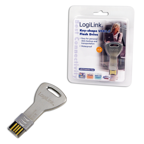 LogiLink USB Flash Key 4GB. USB version: USB 2.0, USB connector: Type-A. Colour of product: Stainless steel, Certification: ROHS, CE, FCC. Compatible operating systems: Windows 98SE, ME, 2000, XP, Vista, 7 Mac OS 10.3.5 +