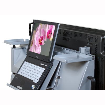 Speaker shelves for the Hi-Lo Duo 680 electric plasma screen trolley lift.