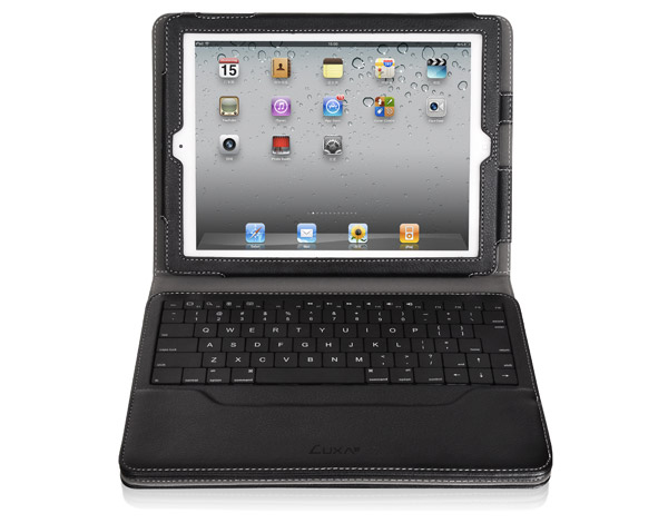 SlimBT Bluetooth Keyboard with Stand Case has a detachable wireless laptop style keyboard with Bluetooth 2.0V technology. The flat, non-rubbery, keyboard gives fast response and natural typing experience. The slim, durable leather like stand case holds your iPad 2 snugly in style while the secure kickstand holds your iPad 2 in landscape mode. Enjoy faster chatting and typing and turn your iPad 2 into a productive workstation!