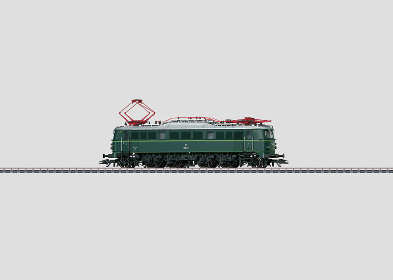 Model: The locomotive has an mfx digital decoder and a locomotive whistle sound that can be controlled. It also has controlled high-efficiency propulsion. 2 axles powered. Traction tires. The triple headlights and 1 red marker light change over with the direction of travel, will work in conventional operation, and can be controlled digitally. The headlights are the so-called "Stielaugen" / "Telescope Eyes". The headlights at locomotive ends 2 and 1 can be turned off separately in digital operation. When the headlights are turned off at both ends, the double "A" lights are on. Maintenance-free warm white and red LEDs are used for the lighting. The engineer's cabs and engine room have interior details. The body has numerous separately applied details. The locomotive has prototypical double-arm pantographs. It also has a finely detailed frame with prototypical reproduction of the quill drive wheels. The buffers are made of metal and are separately applied in convex and flat versions. Length over the buffers 19.5 cm / 7-11/16".
