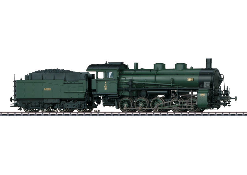 Prototype: Bavarian class G 5/5 heavy freight steam locomotive with a type 2´2 T21,8 tender. Design version from the third production series. Group Administration Bavaria dark green basic paint scheme for the German State Railroad. Road number 5856. The locomotive looks as it did around 1923.