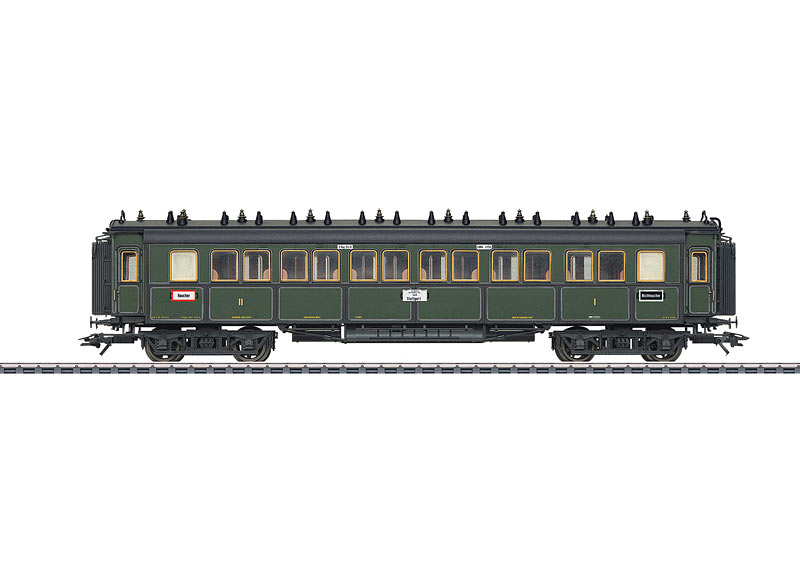 Prototype: Royal Bavarian State Railroad (K.Bay.Sts.B.) type ABBü four-axle express train passenger car, 1st/2nd class. Train route from Munich via Augsburg and Ulm to Stuttgart. The car looks as it did around 1908.
