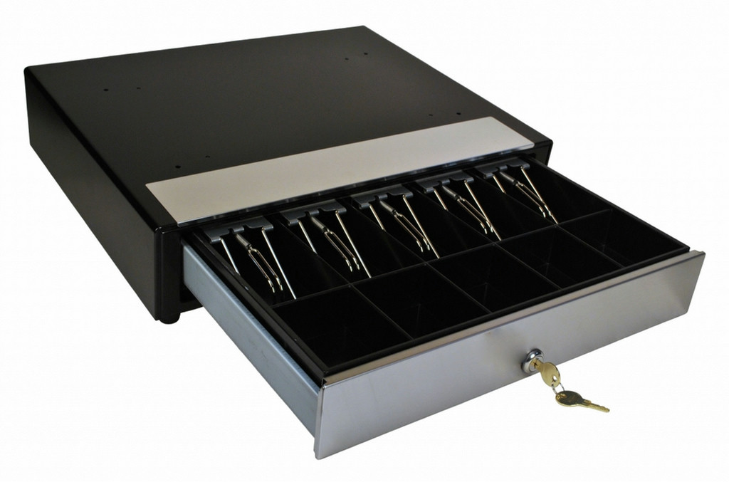 The HP-122 manual cash drawer is the industry standard for under-the-counter mounting.