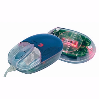 Colourful optical sensor mouse with 3 fully programmable buttons and a scrolling wheel.