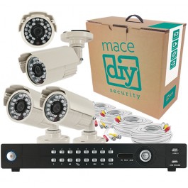 The Mace DIY 16 Channel DVR and 4 Camera Kit comes with a 500GB 4 channels DVR that uses efficient H.264 video compression technology for recording quality video while maximizing hard drive storage capacity and minimizing network bandwidth for real-time video streaming. The Kit also comes with 4 Indoor/outdoor color cameras with Night Vision capabilities that are compatible with the Mace DIY 16 Channel DVR.