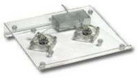 Clear shiny acrylic. Two quiet fans. Terrific durability. An extra USB port. Powered by your Powerbook or iBook's USB connection. Fits all iBook or Powerbook models. Perfect!