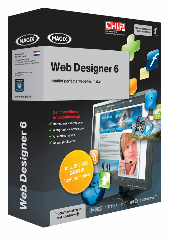 Magix Web Designer 6. Minimum RAM: 256 MB, Minimum processor: Intel Pentium / AMD Athlon 700MHz, Minimum hard disk space: 150 MB. Language version: Dutch