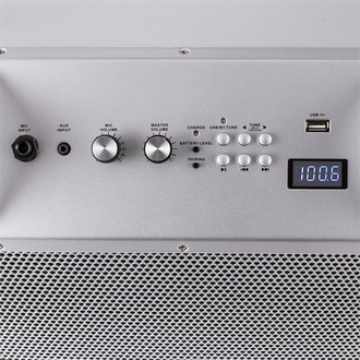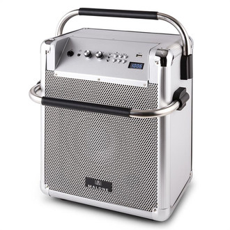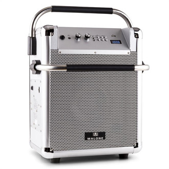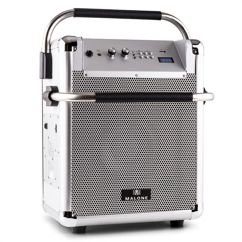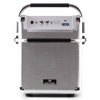 Malone 10026934. Type: Freestanding Public Address (PA) system, Colour of product: Silver, Housing material: Aluminium, MDF. Connectivity technology: Wired & Wireless. Power source type: AC, Battery, AC input frequency: 50/60 Hz, Battery technology: Lithium-Ion (Li-Ion). Cables included: AC
