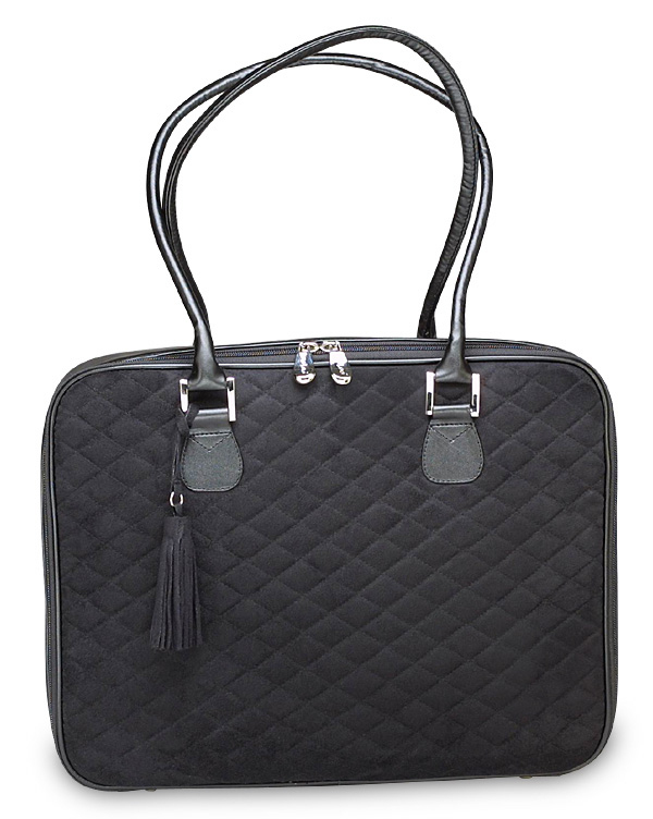 Black Quilted Faux Suede Laptop Bag 16"